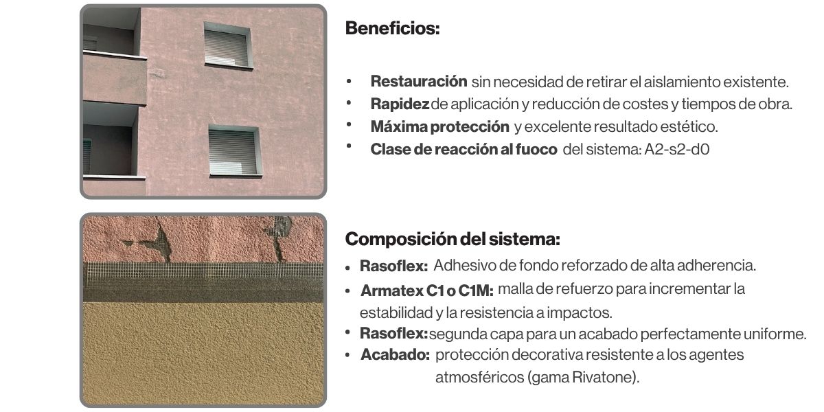 Sistema ideal para la restauración de sistemas de aislamiento térmico existentes o fachadas deterioradas, desarrollado para garantizar eficiencia y larga duración.